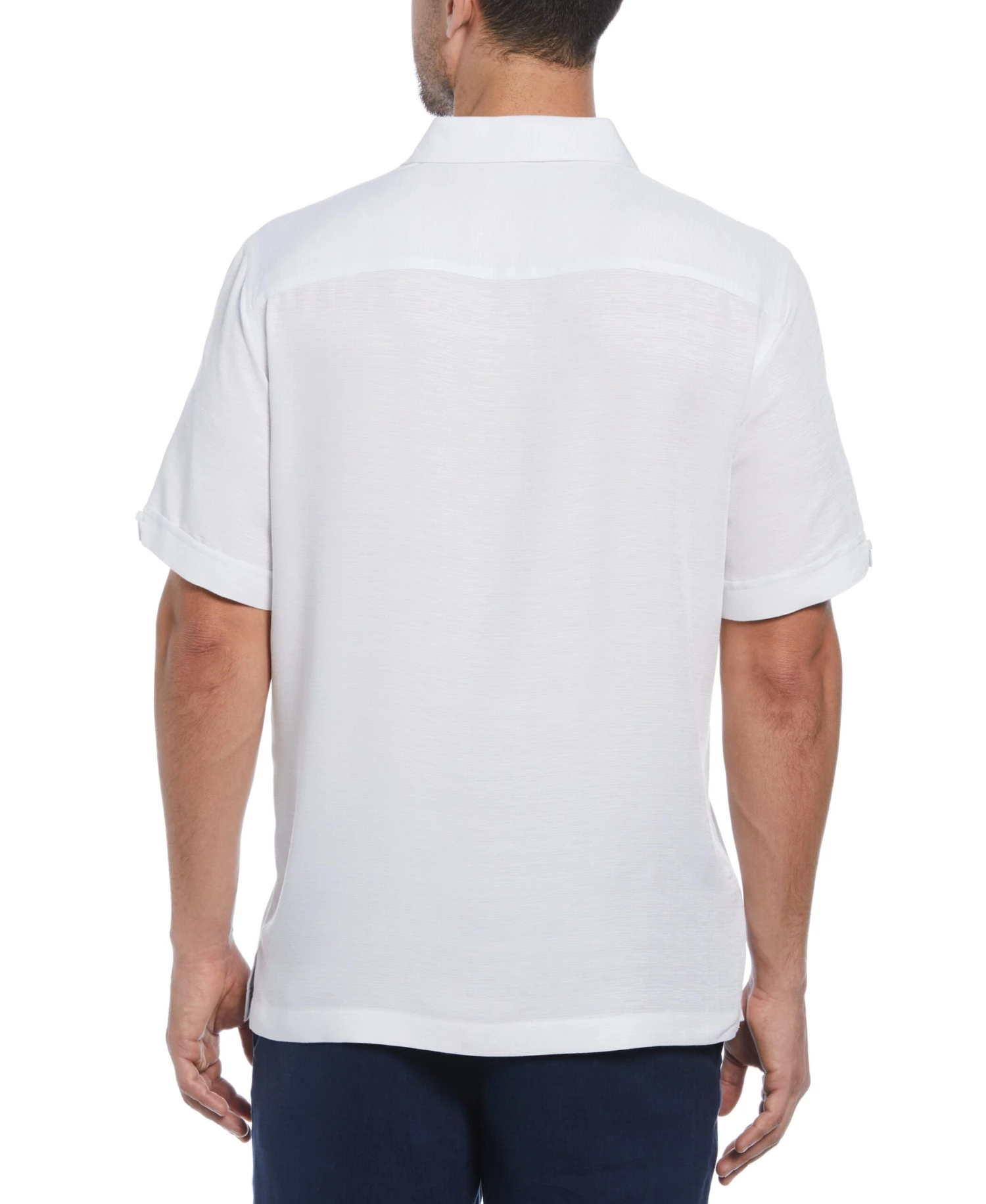 This stylish men’s tropical shirt from Cubavera is crafted from soft viscose fabric that features a textured surface for a unique look and feel. The casual short sleeve button-down shirt features a Cuban collar for retro flair. A sunset print with palm leaves across the chest adds a relaxed island vibe to the design, making this shirt ideal for relaxing poolside, strolling along a sandy beach or enjoying a sunny day out on the town.